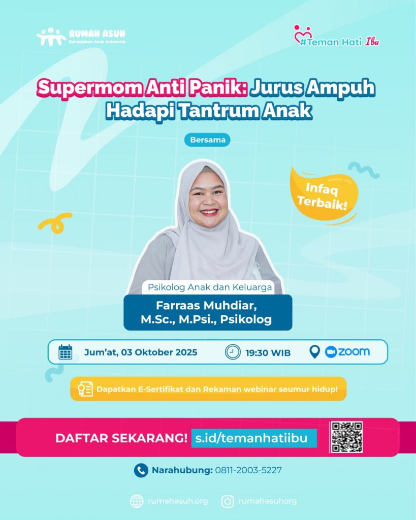 Melalui webinar eksklusif “Supermom Anti Panik: Jurus Ampuh Hadapi Tantrum Anak”, Rumah Asuh hadir untuk membantu Anda memahami akar masalah di balik ledakan emosi anak. Kami ingin mengubah momen tantrum menjadi kesempatan emas untuk mendekatkan diri dengan buah hati Anda.