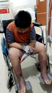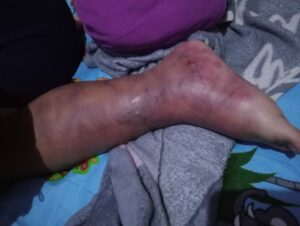 Dampaknya sangat mengerikan bagi tubuh mungilnya. Selama lima tahun terakhir, kaki Gabriel terus berdarah, bernanah, dan melepuh. Kondisi kakinya kini nyaris membusuk, membuat Gabriel kehilangan kemampuan untuk berjalan. Tak hanya di kaki, tubuhnya pun kini membengkak dan dipenuhi lebam.